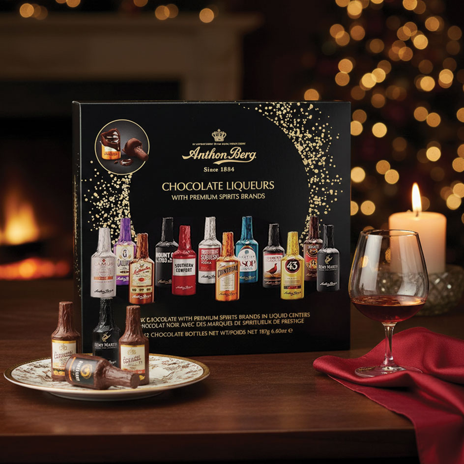 Anthon Berg Sortido de Mini Garrafas de Chocolate Preto com Recheio Líquido de Bebidas Espirituosas 187g