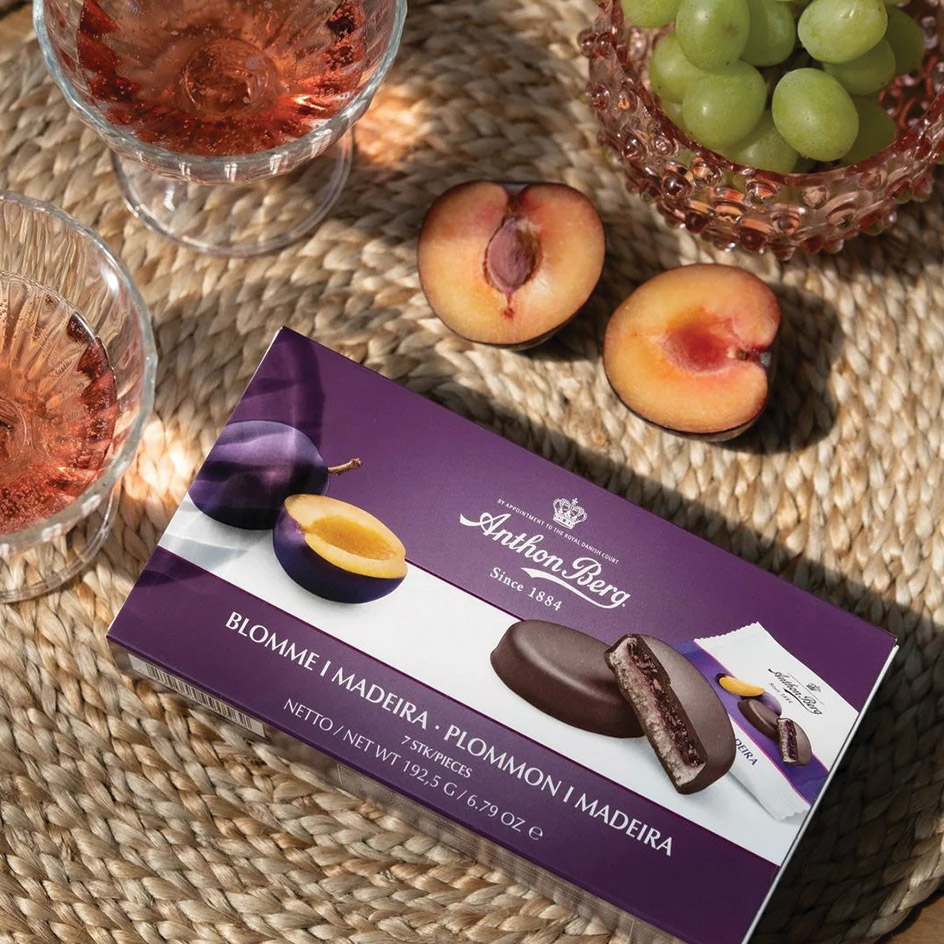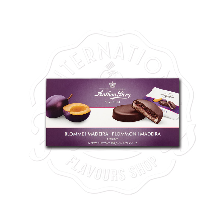 Anthon Berg Lifli Plum in Madeira 8 Discos de Chocolate Preto Recheados com Maçapão (41%) e Ameixas com Vinho Madeira 220g