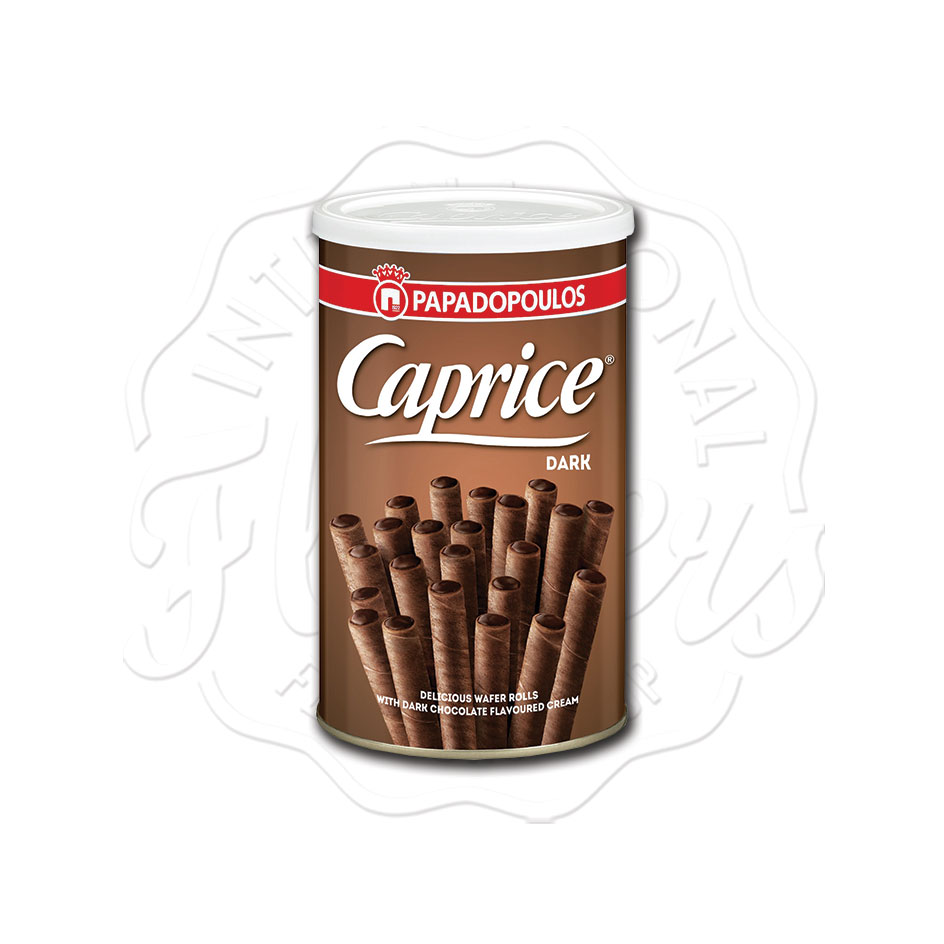 Caprice Dark Wafer Rolls with Dark Chocolate Cream Lata com Rolos de Wafer Recheados com Creme de Chocolate Preto 115g