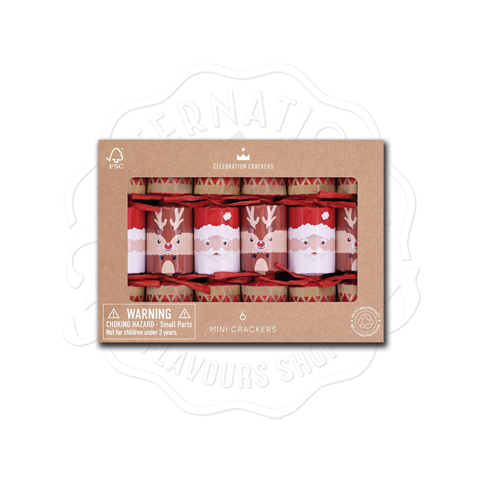Celebration Crackers Mini Santa Reeinder 6 Christmas Crackers Caixa com 6 Crackers Pequenos em Kraft e Desenhos de Pai Natal e Renas com Desenhos para Crianças no Interior
