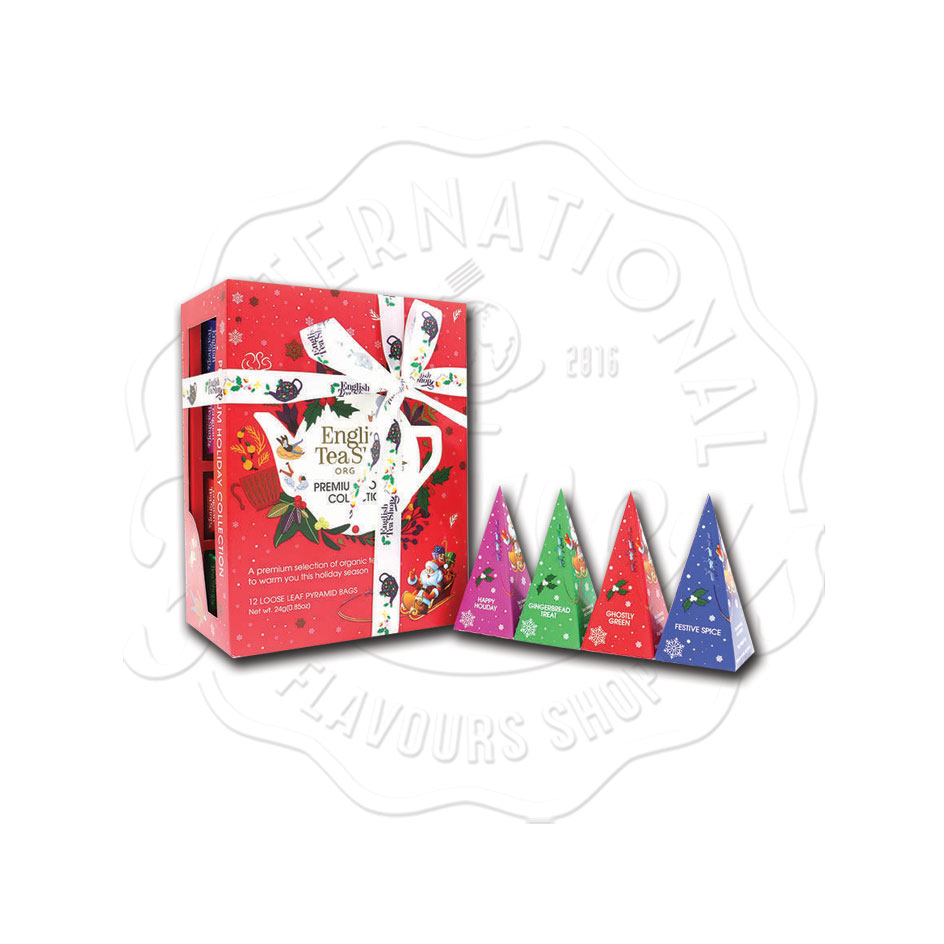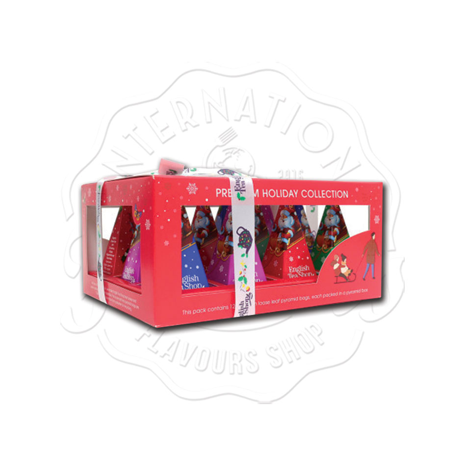 English Tea Shop Seleção Red Bauble Holiday Caixa com Colecção de 4 Diferentes Infusões e Chás Biológicos com 12 Saquetas em Forma de Pirâmides 24g