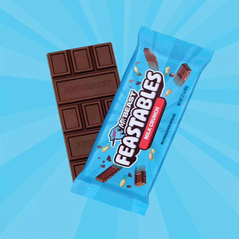 Se gostas de chocolate de leite com um toque crocante, vais adorar a Feastables MrBeast Crunch Milk Chocolate with Puffed Rice Bar. Esta barra de 60g é uma combinação perfeita de chocolate de leite suave e arroz tufado crocante, que te vai dar uma sensação de satisfação a cada dentada. Cada barra vem numa embalagem personalizada super gira, pelo que vais poder provar e colecionar as diferentes embalagens e poder mostrar aos teus amigos que és um verdadeiro fã do MrBeast.