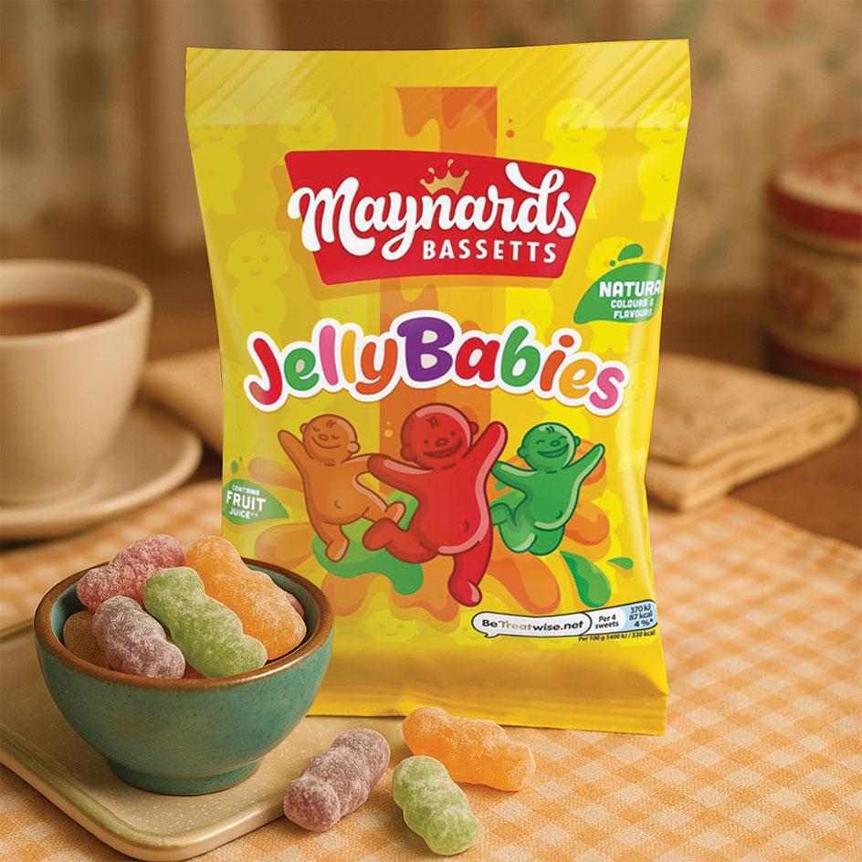 Se queres experimentar uma guloseima com tradição, personalidade e um sabor irresistível, as Maynards Jelly Babies são perfeitas para ti. Estas gomas emblemáticas do Reino Unido, são famosas pelo seu formato divertido em pequenas figuras de bebé, conquistam gerações graças à sua textura macia, polvilhada com açúcar e explosão de sabores frutados a cada dentada.