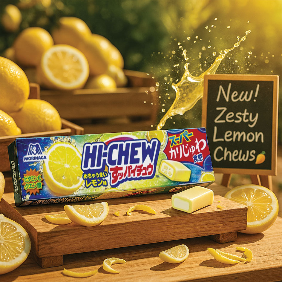 O sabor de limão aqui é elevado a outro nível: natural, vibrante e envolvente, com cada pedaço a ter uma textura suave e elástica, típica dos Hi-Chew, proporcionando uma experiência de mastigação única e duradoura. Mas o destaque está mesmo na intensidade do sabor “suppai” (ácido, em japonês), que dá a este doce uma personalidade forte e viciante devido aos pedaços crocantes incorporados.