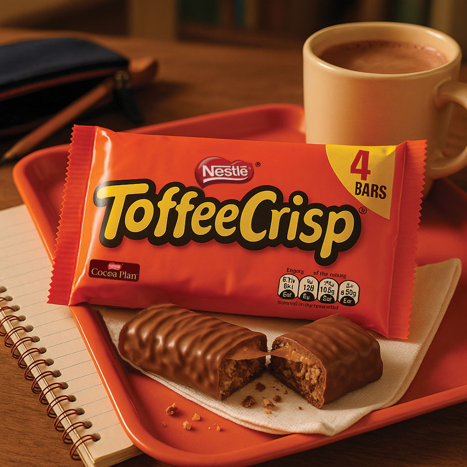 Nestlé Toffee Crisp 4pk Saco com Conjunto de 4 Barras de Chocolate de Leite com Recheio de Caramelo Suave e Pedaços de Cereais Crocantes 124g