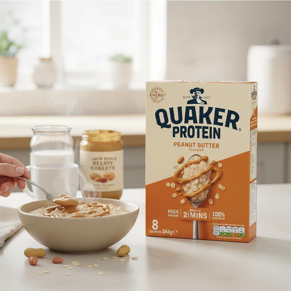 Quaker Oat So Simple Protein Peanut Butter Porridge Papas de Aveia em Flocos Instantânea com Sabor a Manteiga de Amendoim em Saquetas 8UNI 335g