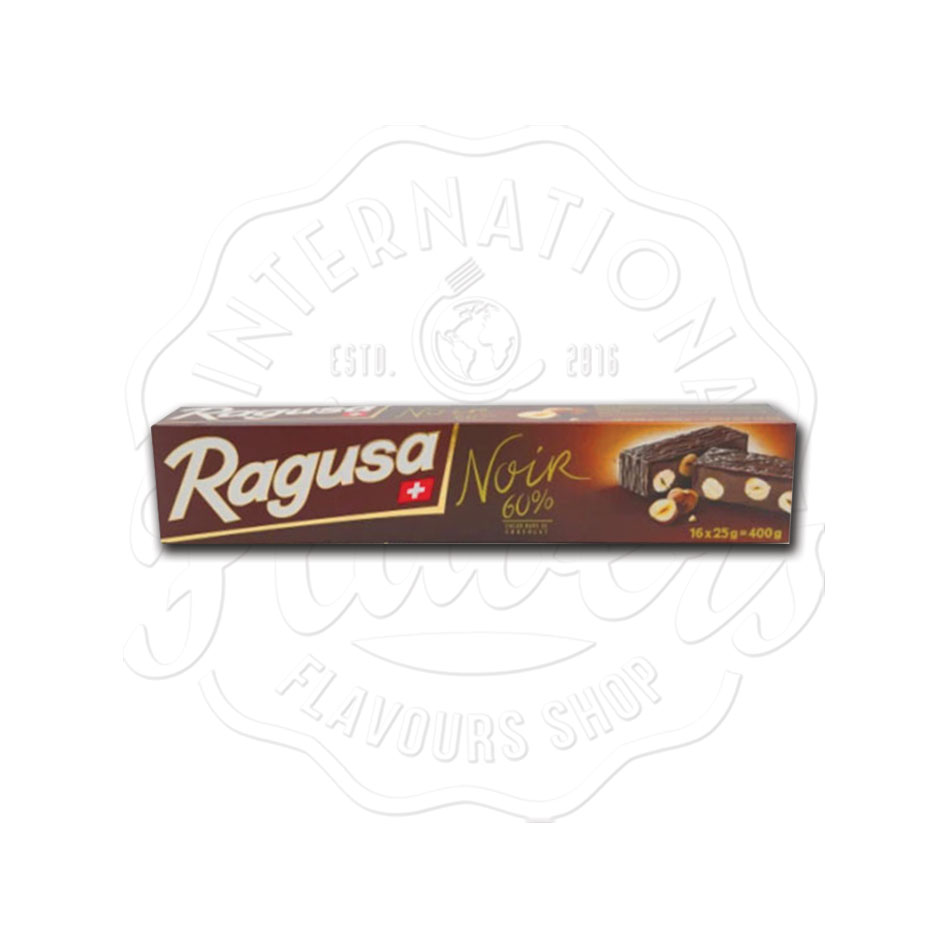 És apreciador de chocolate preto? Então vais ter de experimentar o Ragusa for Friends Noir. Que é uma deliciosa combinação de chocolate preto com 60% de cacau, recheado com praliné de avelã e pedaços de avelã torrada.