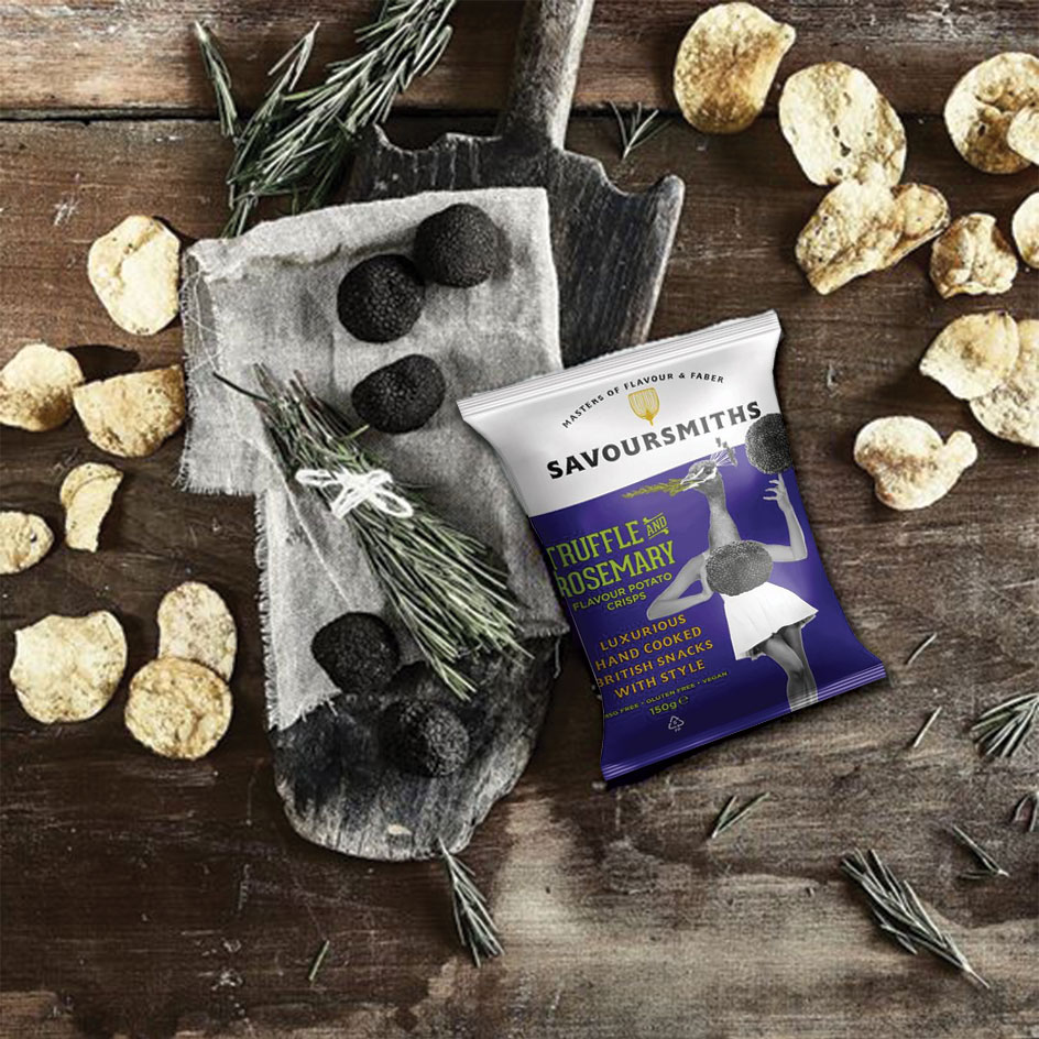 Savoursmiths Truffle and Rosemary Potato Crisps Snack de Batata Frita Artesanal Gourmet com Sabor a Trufa Negra e Alecrim 150g