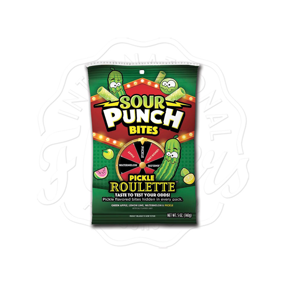 Sour Punch Bites Pickle Roulette Saco com Desafio de Gomas Iguais com Sabores Ácidos a Maçã Verde, Limão e Lima, Melancia e Pickle 140g