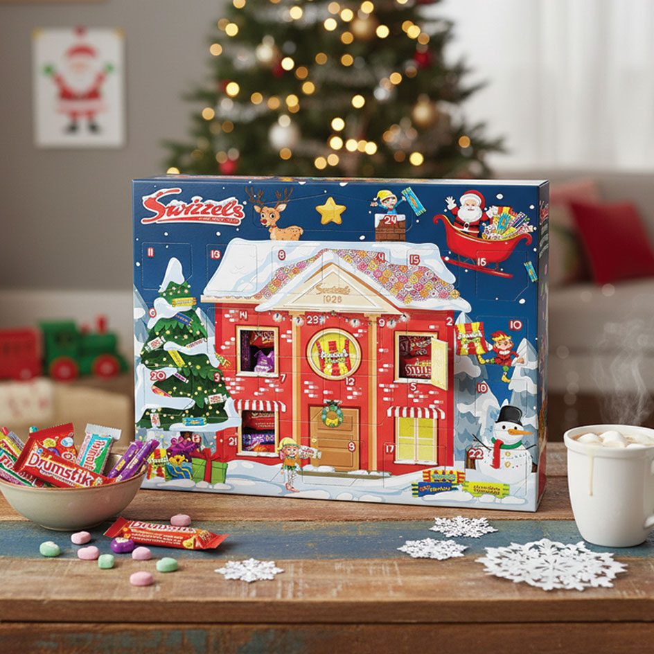 - 24 janelas recheadas com doces clássicos Swizzels para uma contagem decrescente divertida;