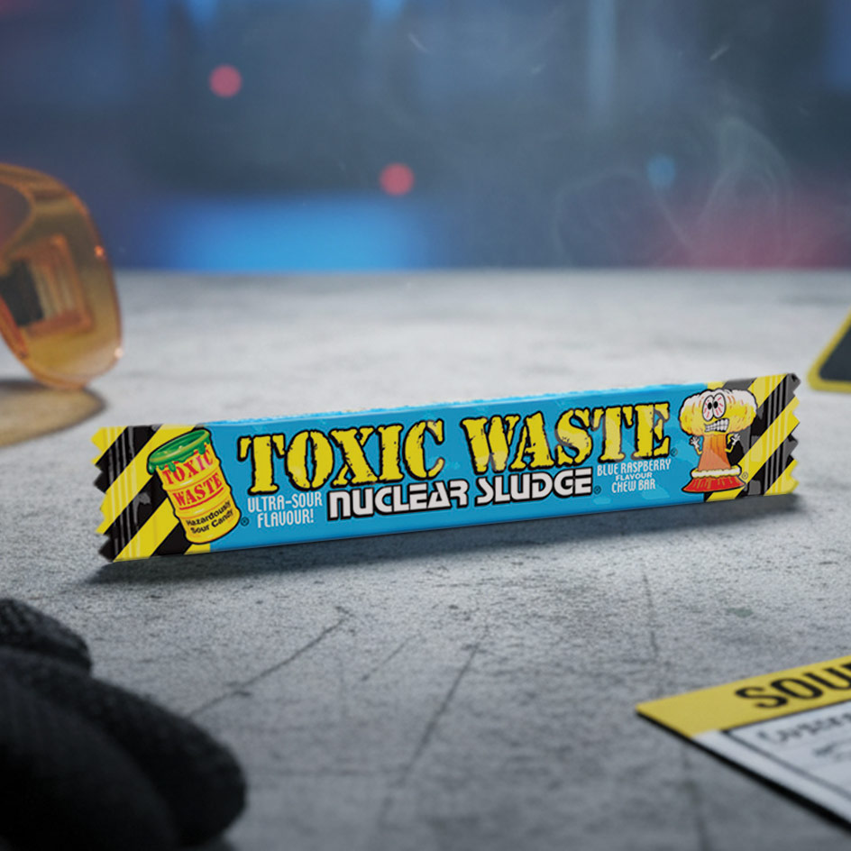 Toxic Waste Blue Raspberry Nuclear Sludge Barra de Rebuçado Mastigável com Sabor Ácido a Framboesa Azul 20g