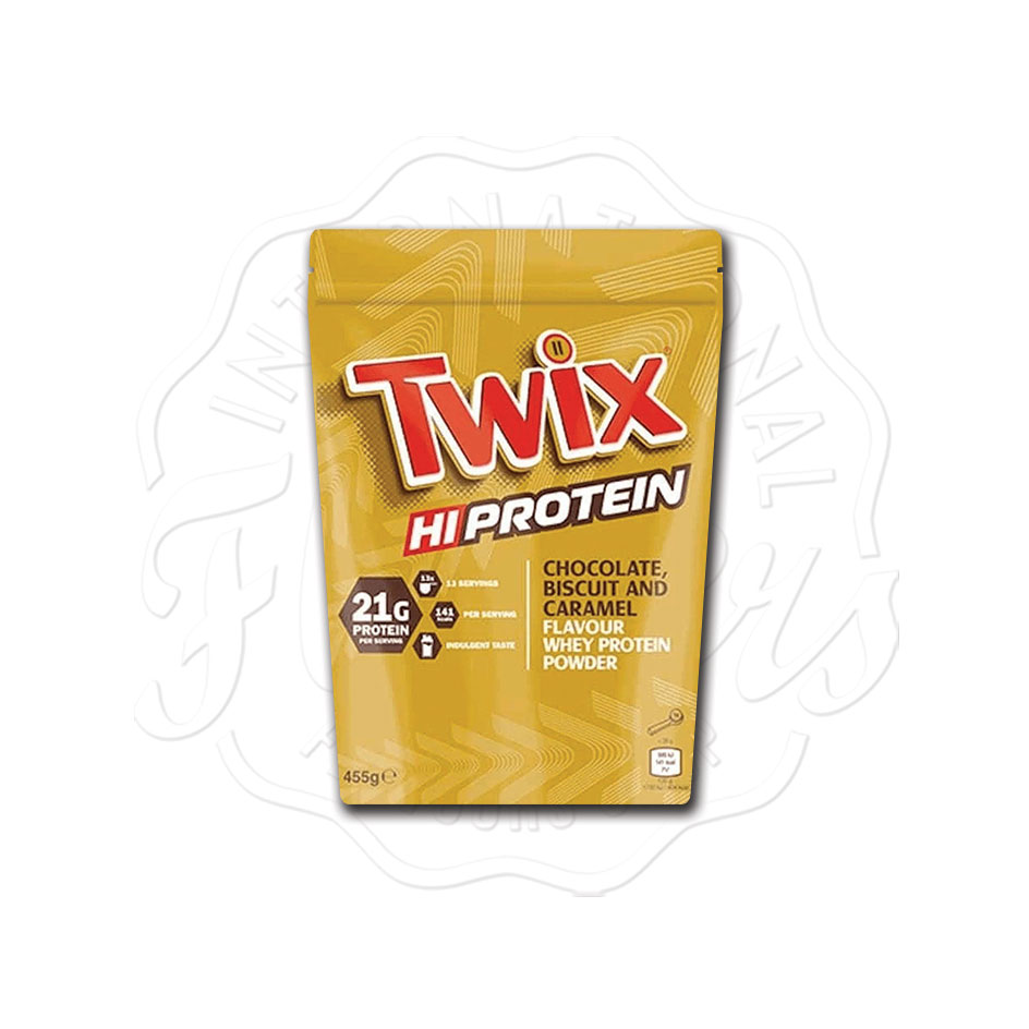 Twix HI Protein Chocolate, Biscuit and Caramel Whey Protein Powder Preparado Proteíco em Pó com Aroma de Chocolate, Biscoitos e Caramelo com Edulcorantes Pronto a Usar para Bebidas 455g