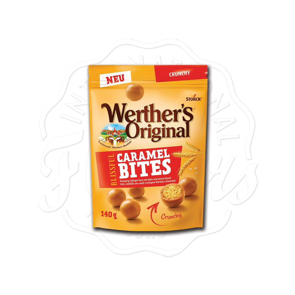 Werther’s Original Caramel Bites Crunchy Saco com Bolas de Malte Crocante Estilo Favo de Mel com Toque de Sal e Cobertura de Caramelo Werther’s Macio e Cremoso 140g