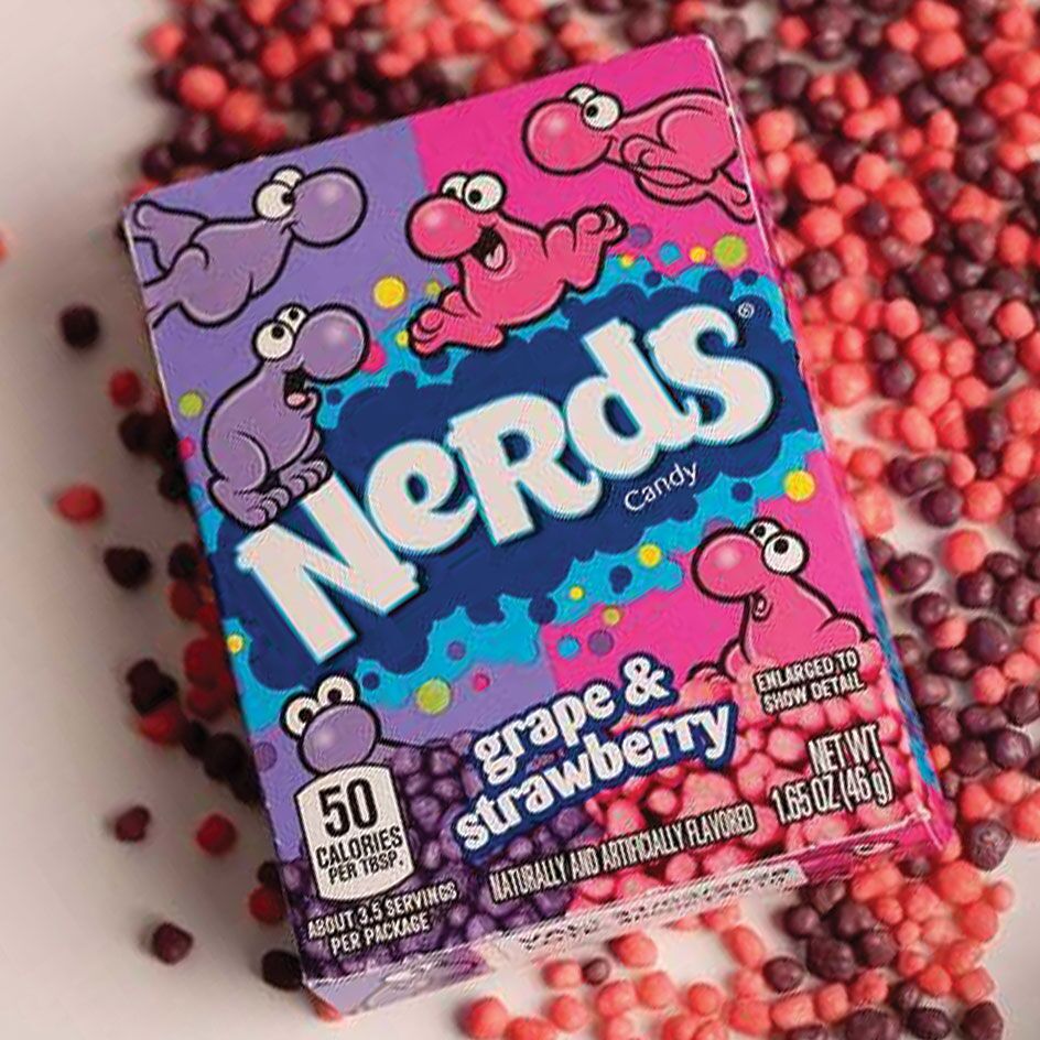 Os Nerds destacam-se pelo seu tamanho pequeno, mas com um impacto gigante. Cada grão é um convite a uma explosão de sabor que dança na língua. A embalagem dupla permite-te escolher o teu sabor preferido ou misturar os dois para criares uma experiência ainda mais única. Este doce icónico é ideal para momentos de diversão, seja sozinho ou em companhia.